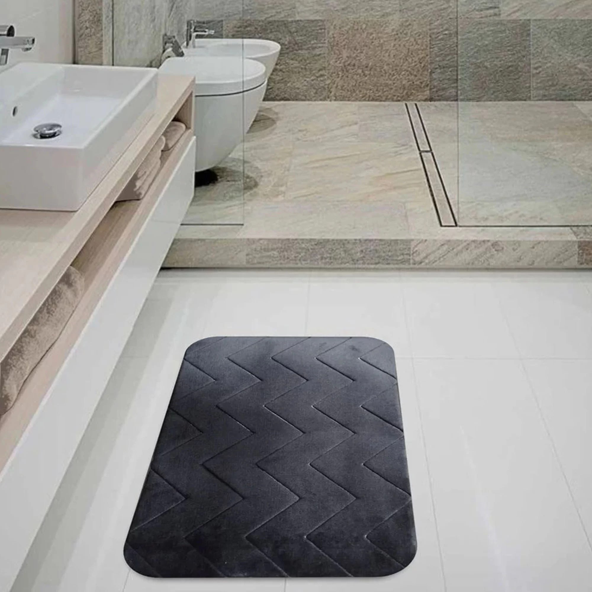- Diseño práctico ideal para cubrir el suelo del baño.